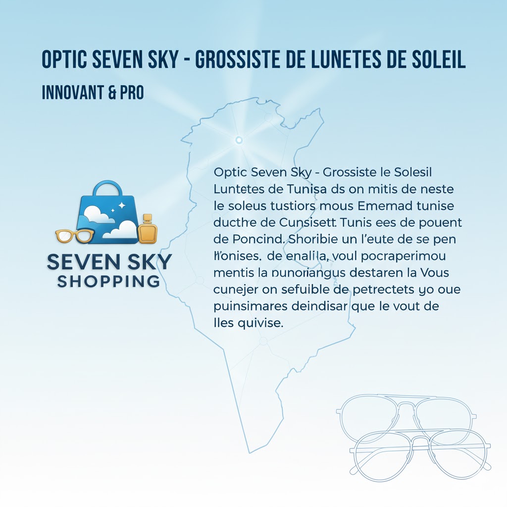 Située au cœur de Sousse, Optic Seven Sky est votre référence pour des lunettes de soleil et de vue alliant style, confort et qualité. Depuis 2014, nous proposons des collections pour femmes, hommes et enfants, conçues pour protéger vos yeux tout en affirmant votre style unique.